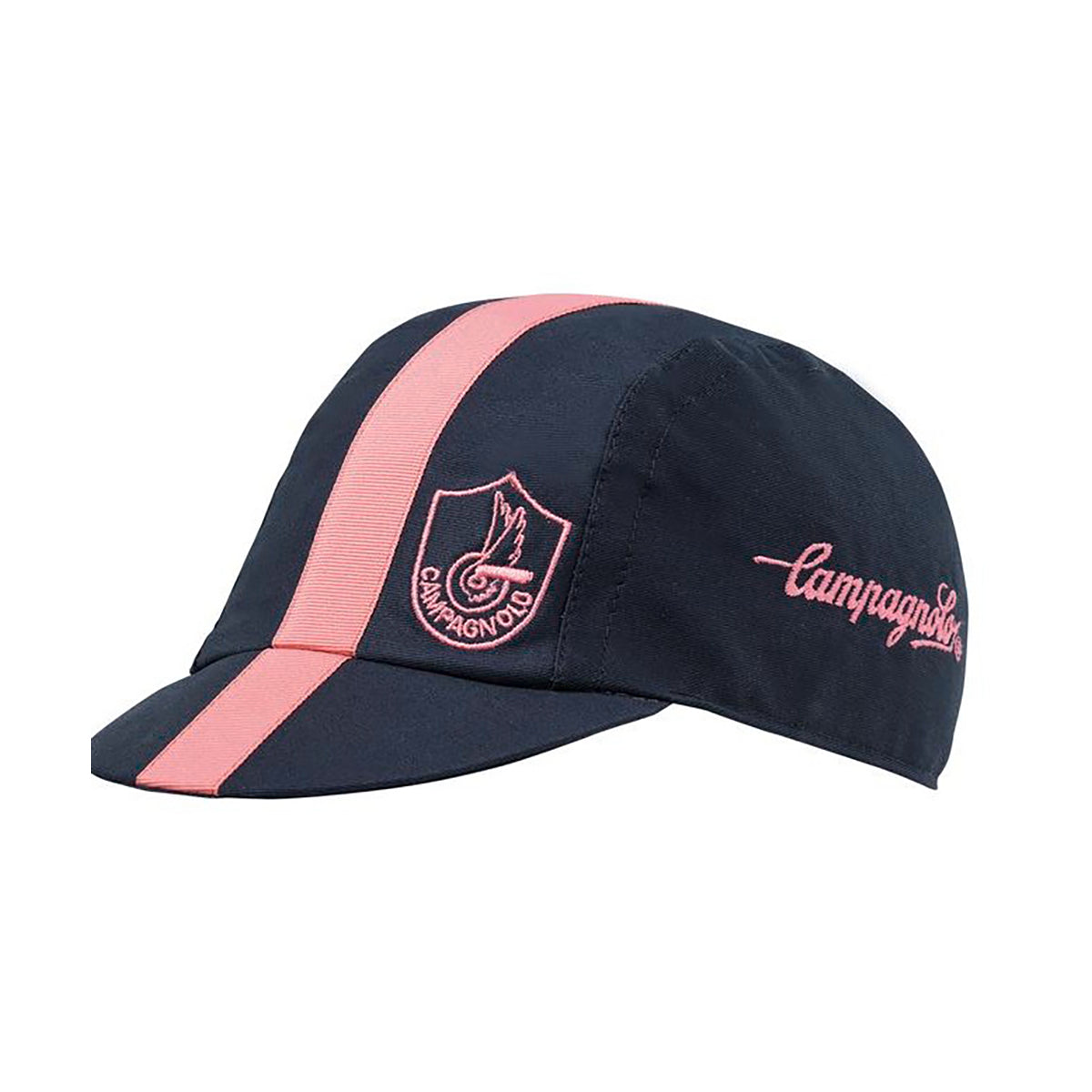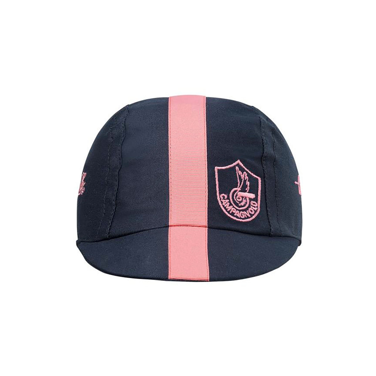 When the Giro d'Italia passes by, we're on home ground. Many victories, many kilometers in the pouring rain and the burning sun. The Campagnolo Giro d'Italia cycling cap pays homage to the great champions who made our products famous, with elegant pink detailing on corporate blue.