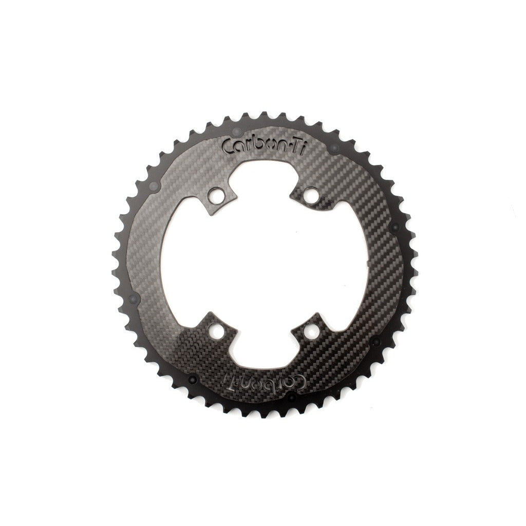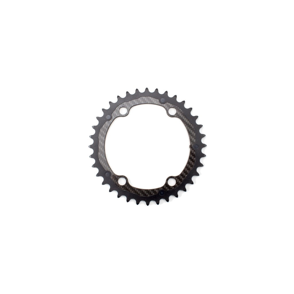 Chainring in aluminium alloy AL7075-T6, 3K glossy structural carbon fiber with Titanium Grade 5 pins.