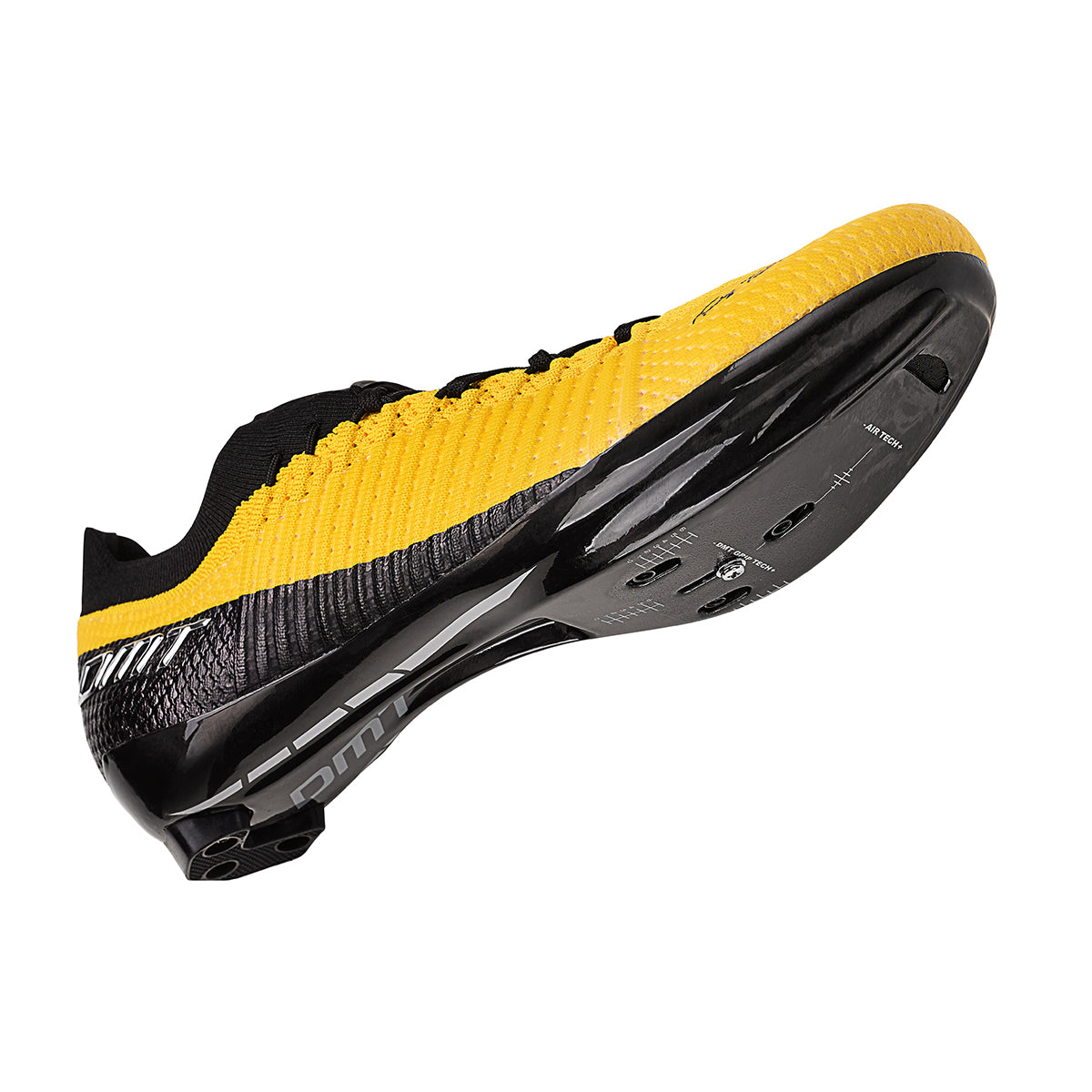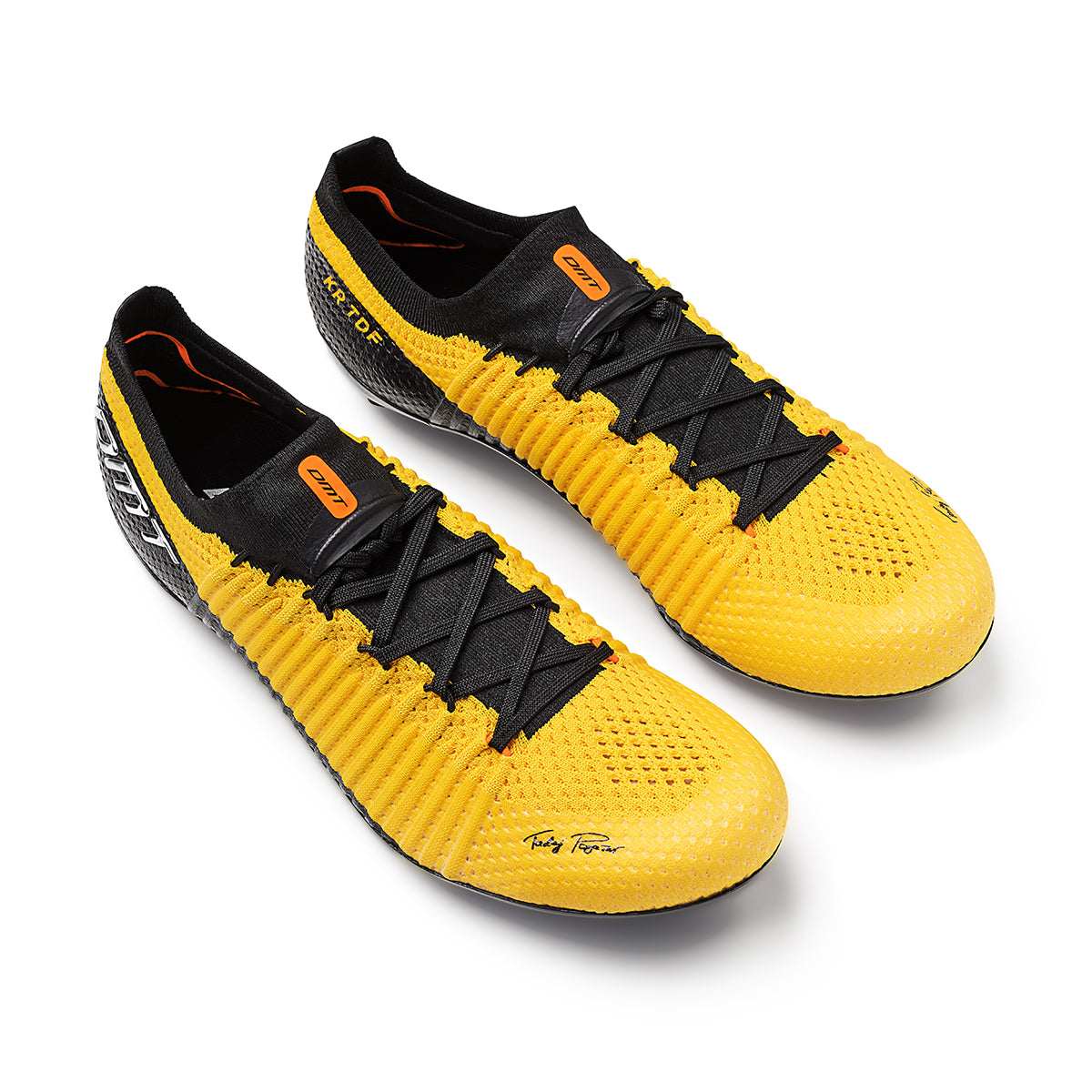 Originally designed as a test prototype for Tadej Pogačar. This is the shoe that Tadej wore on his impressive ride to victory. Innovative construction with a full one piece seamless upper and a reinterpretation on the classic lace closure. Exceptional comfort, light, breathable, proprietary Engineered Knit construction eliminates pressure points, fits like a glove and is super breathable. Solid and stable energy transfer thanks to the anatomic carbon outsole.