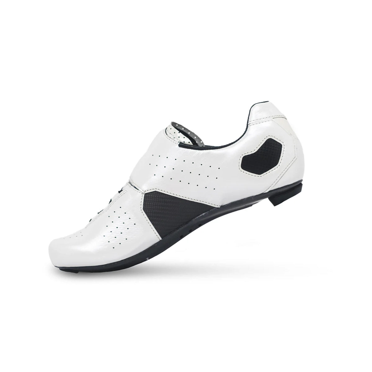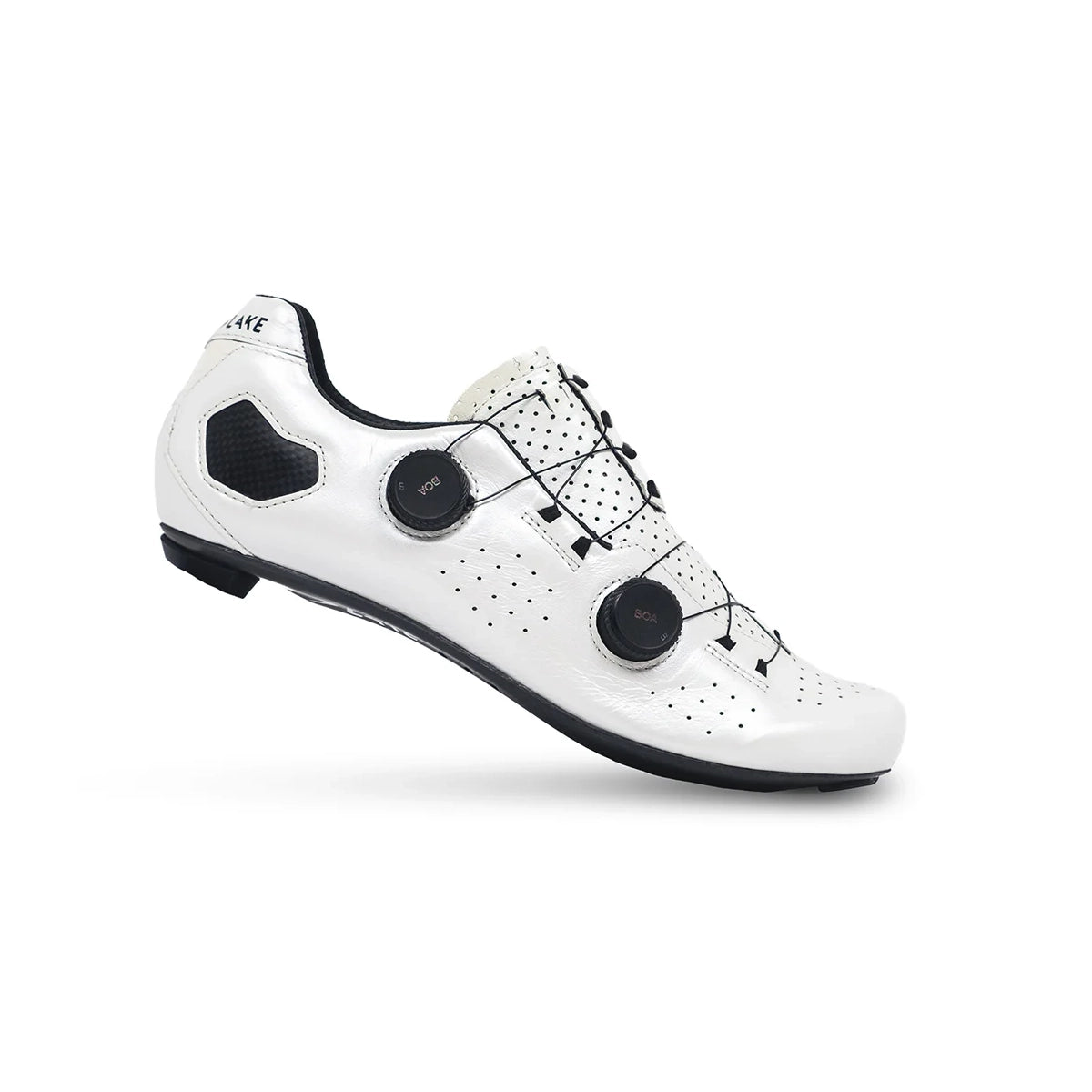 OUTSOLE - Inclusive of our Lake Race 100% Carbon Fiber Sole for super stiffness and performance. Available in a 3-hole cleat pattern, the CX333 utilizes Lake’s patent double sole system. The inner sole is a semi-flexible fiberglass platform, that allows the foot to have ample flexibility at the ball of the foot where the swelling can be prominent, and typically hot spots or numbness would occur. The inner sole is then suspended over the outer rigid carbon sole. This unique system enables us to use an extremely stiff carbon outsole, without sacrificing riding comfort, giving you the ultimate balance of performance and endurance.
