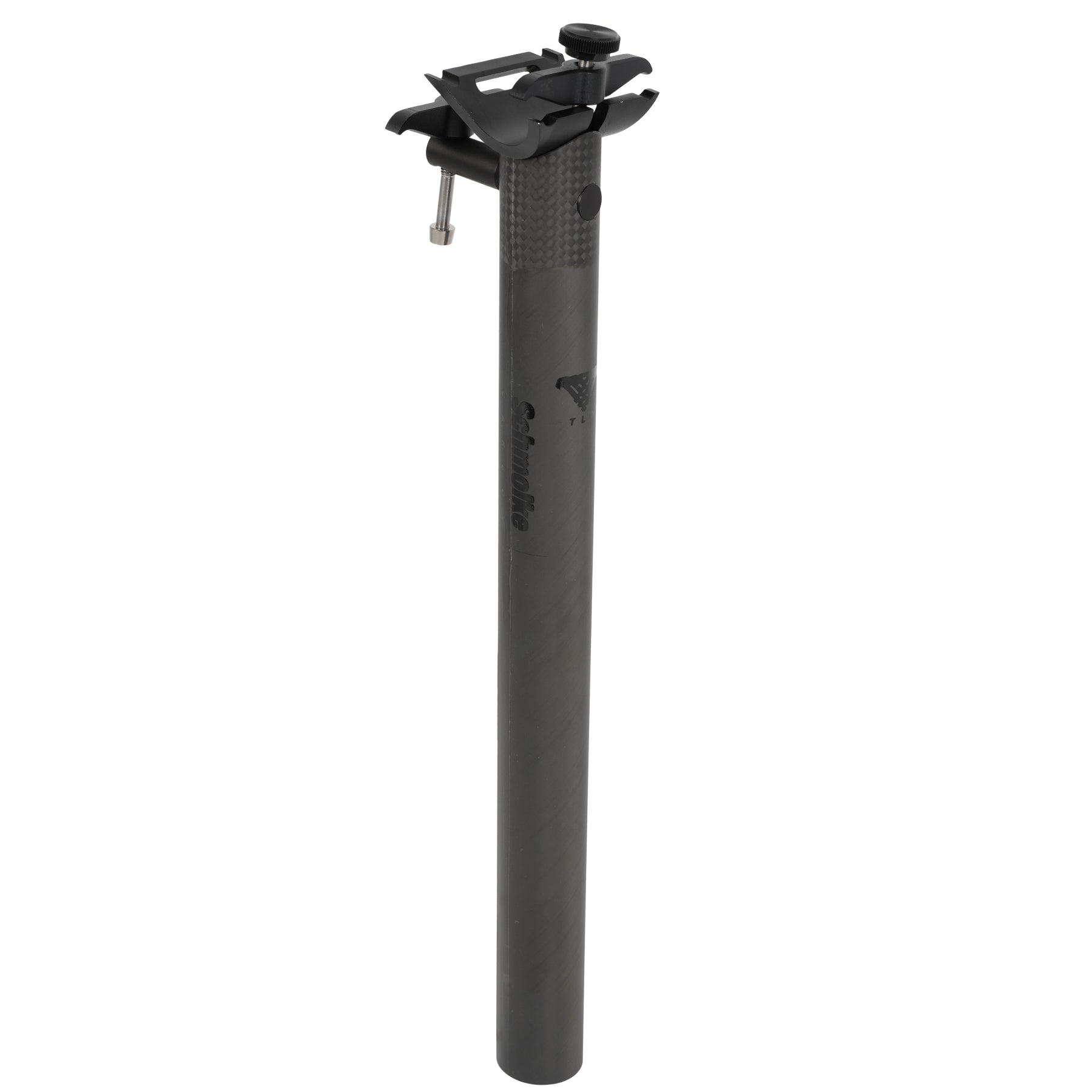 Like all our products in the TLO series, our Setback full carbon seatposts are hand-wound from the best prepregs available on the market to suit your weight and riding style. Compared to standard carbon seatposts, these lightweight seatposts are designed to be more vertically compliant without losing lateral or torsional stiffness, resulting in a noticeably more comfortable ride without losing energy. The head clamps the saddle frame at 4 points. The slight rounding of the aluminium clamping parts means that even sensitive carbon saddle racks are not subjected to excessive stress. The saddle holder is designed for both oval and round saddle racks. The width must not exceed 8 mm and the height 12 mm.