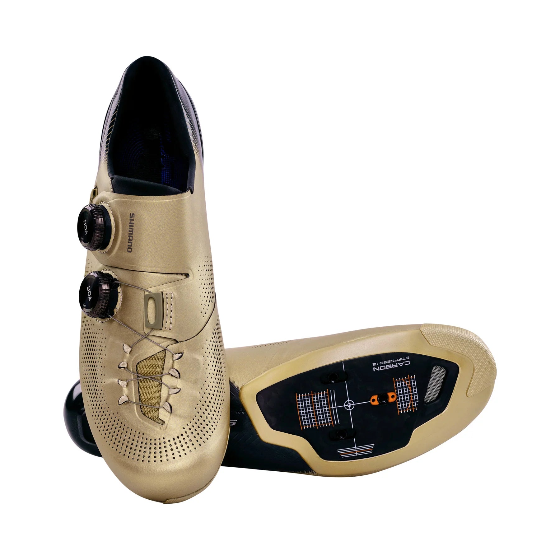 Bringing a pop of color and style to the peloton, the Limited Edition RC902S Champagne colored shoes are supremely engineered for your fastest efforts. With its ultra sleek lines, optimal power transfer, and refined pro-grade features, the RC903S is the culmination of our most advanced technologies for a performance elevating race shoe that feels and functions unlike anything you’ve worn before.