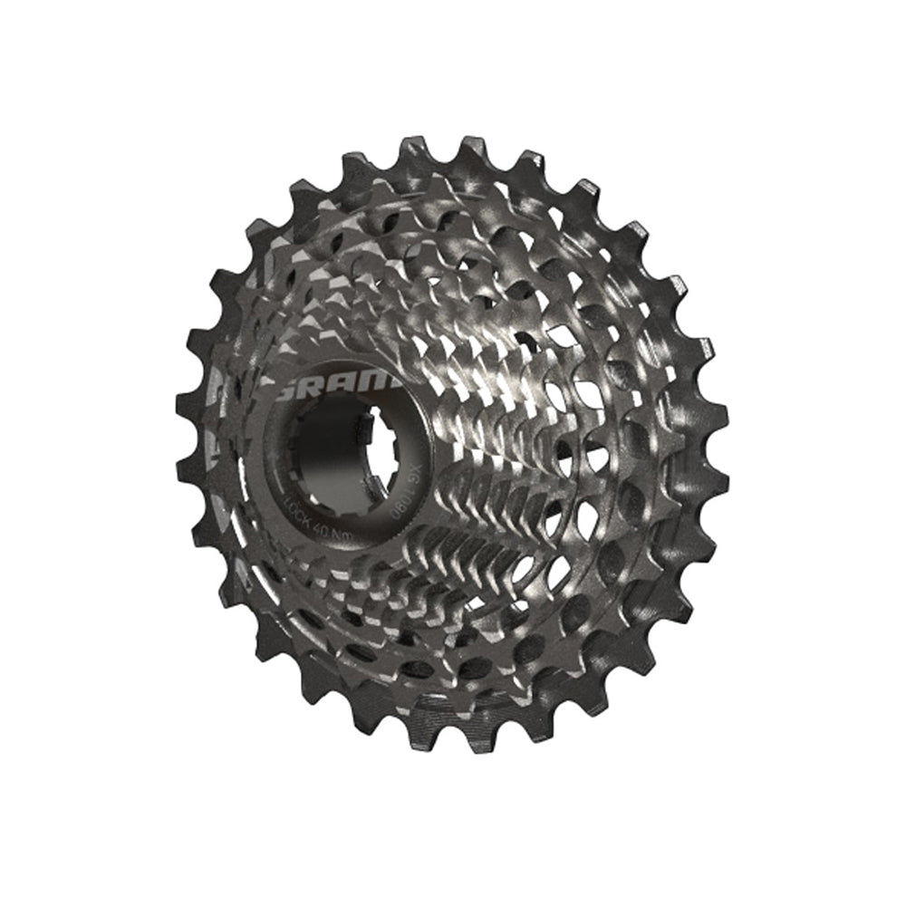With graphics to match SRAM RED® eTap® components, the PowerdomeX™ is super light, silent, and delivers an undeniable performance advantage. The nine cogs in the cog cluster are machined from a single block of high grade tool steel, increasing stiffness while weighing even less than a titanium cassette. Between each cog is a StealthRing™ elastomer to reduce vibration and noise. Cutouts on the rear cog further reduce weight and add stiffness. It's the final piece in the drivetrain puzzle, and paired with a SRAM RED® rear derailleur, it delivers ultra-fast, ultra-quiet shifts that will always put you in the right gear.