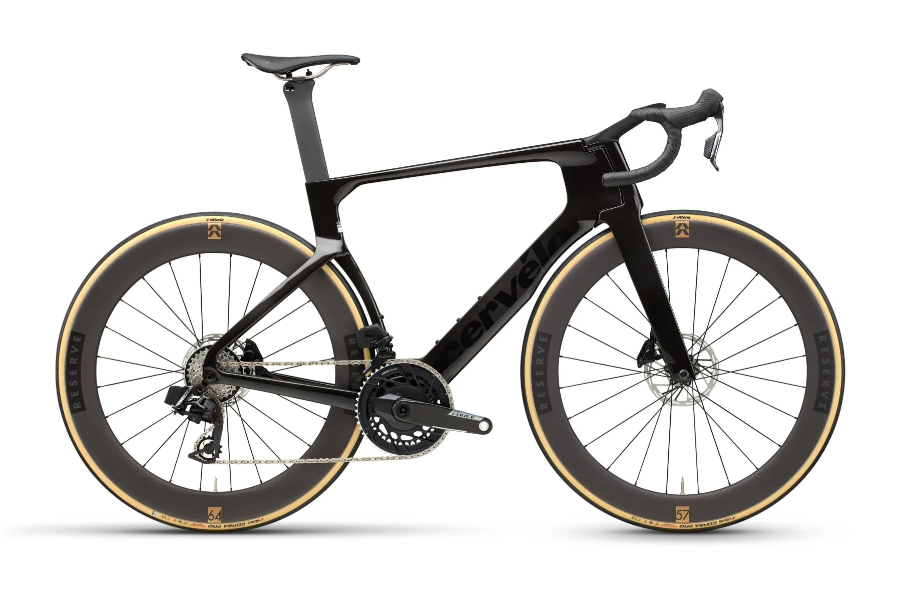 Reserve 57|64 Designed for S5: The new Reserve 57|64 wheelset was co-developed by Reserve and Cervélo, and designed for use in the new S5. The rear wheel’s asymmetry matches the seat tube, ensuring air flows smoothly over both. The new wheelset is 3 Watts faster than the 52|63 wheels, and weighs the same.