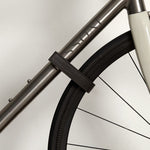 Depending on the frame geometries, when you hang your bicycle on a support the front wheel tends to turn around. If you are a perfectionist and you want to keep it perfectly straight when you park it on Bike Safe, our precious leather wheel strapis the solution.