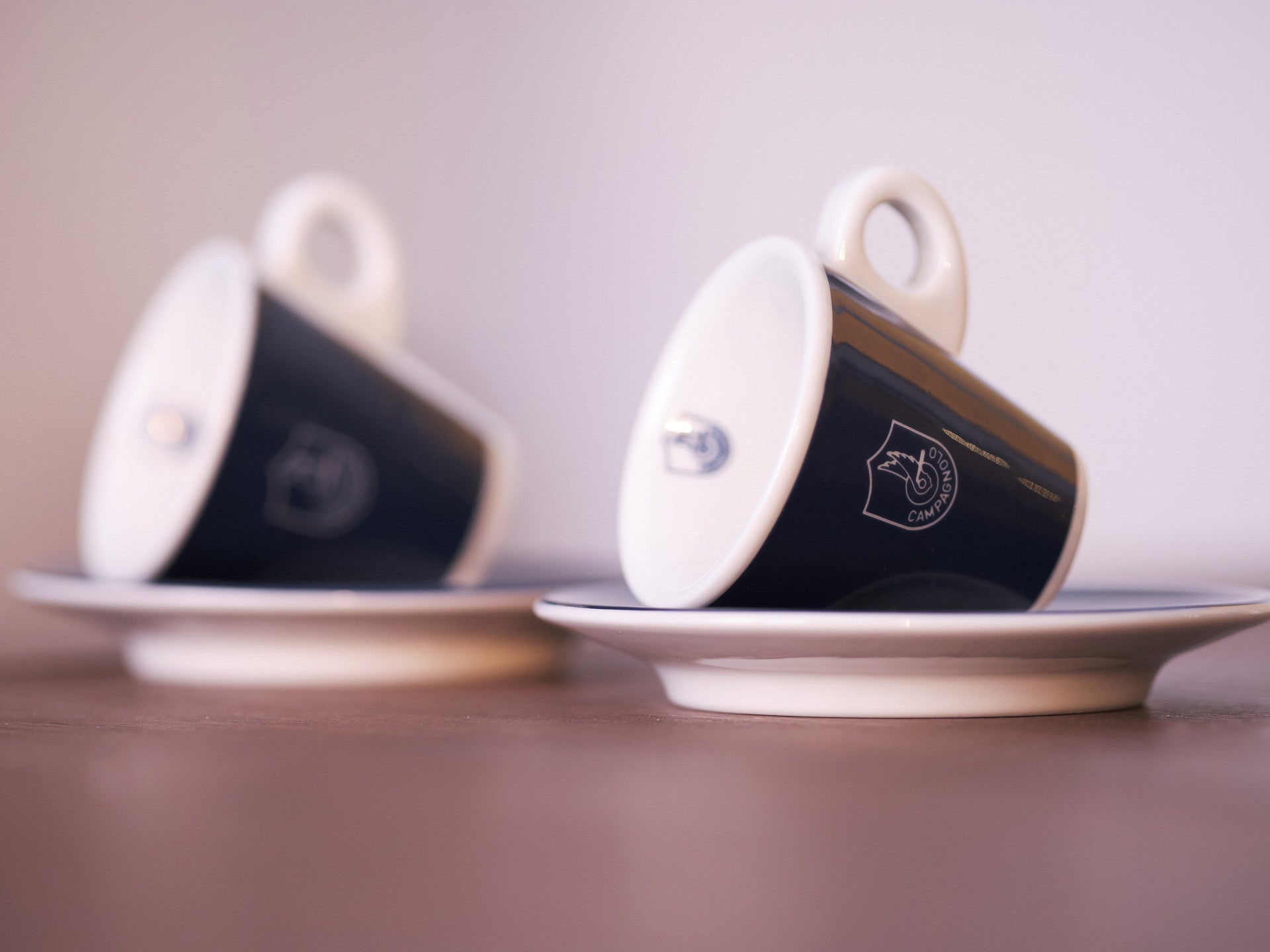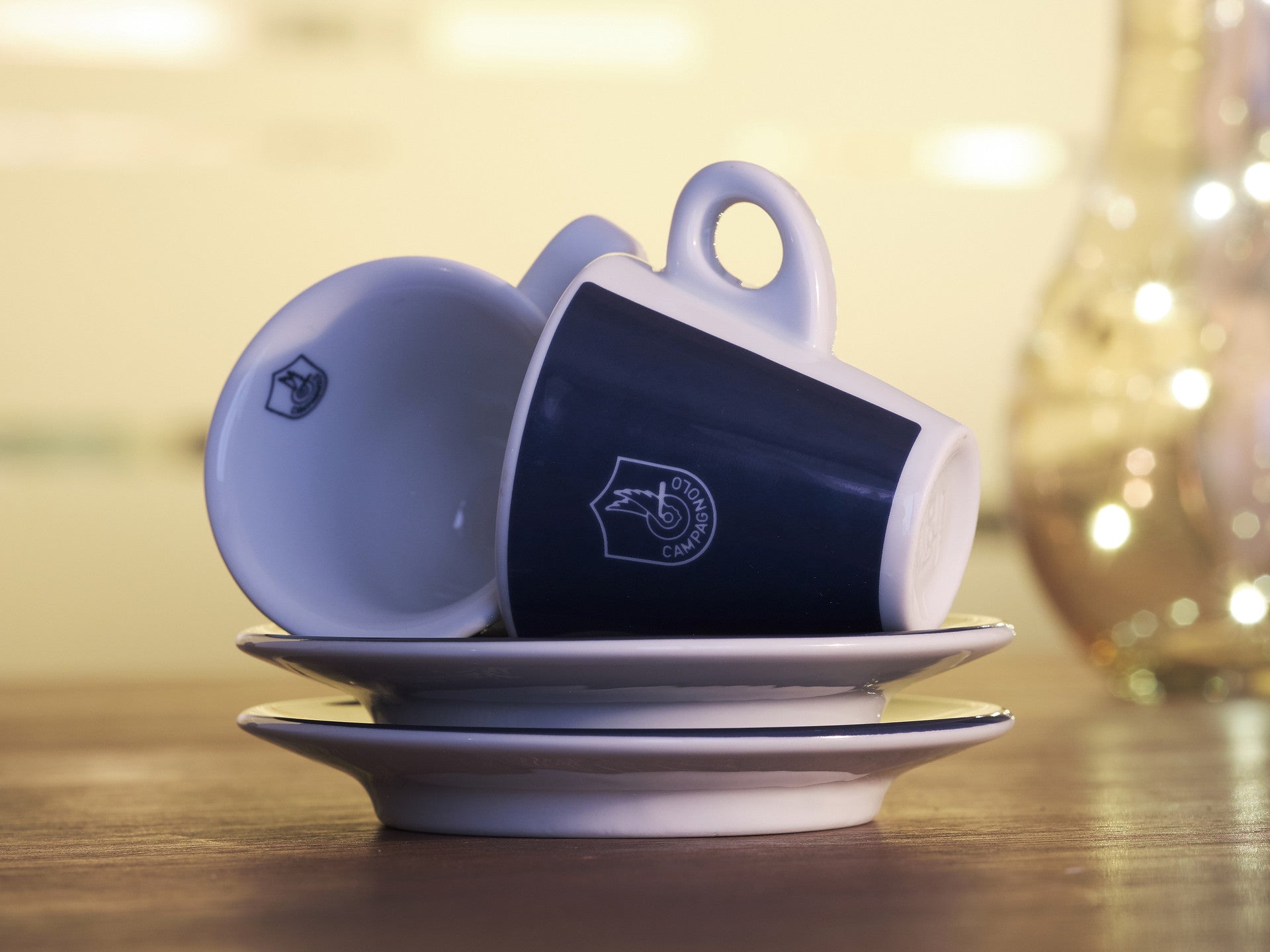 The Campagnolo espresso cups combine two of the most characteristic elements of the Italian culture: cycling and coffee.