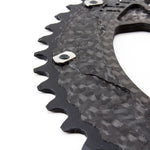 Chainring in AL7075-T6 aluminum alloy, 3K glossy structural carbon fiber with Titanium Grade 5 elements.